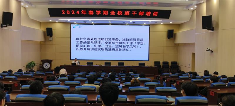 为进一步提高学生干部队伍的凝聚力、向心力和战斗力,更好地服务同学成长和班级管理,5月7日下午,学校在知行厅隆重举行了2024年春学期全校学生班干部培训。机电工程系学工主任蔡兴华开展了精彩讲座。在校班级的班长出席会议。培训会由学生管理服务中心主任施文龙主持。