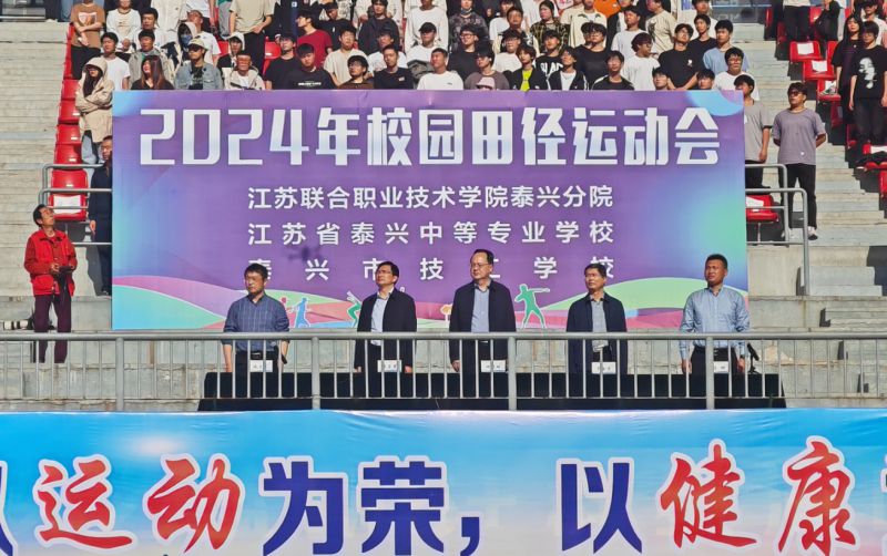 5月16日上午,在职教活动周期间,我校2024年校园田径运动会在泰兴市体育中心正式开幕。校党委副书记、校长何晨阳,校党委副书记丁金荣,副校长曹荣军、苏辉出席开幕式。特别邀请了部分学生家长参与了本届校园运动会开放日。开幕式由学生管理服务中心主任施文龙主持。