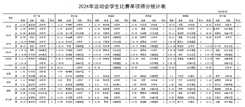 以体强心|“2024年校园田径运动会”成绩单