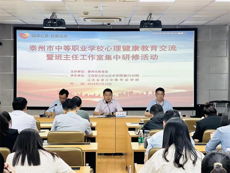 首夏犹清和,芳草亦未歇。5月28日,我校举行了主题为“润泽心灵,珍爱生命”泰州市中等职业学校心理健康教育交流暨班主任工作室集中研修活动。泰州市教学研究室副主任钱昌俊,学校副校长周勇,以及来自泰州市中职学校“润心”行动负责人、省市中等职业学校班主任工作室领衔人和部分心理健康教育老师代表、班主任代表等近50名老师参加了此次活动。活动由学生管理服务中心主任施文龙主持。
