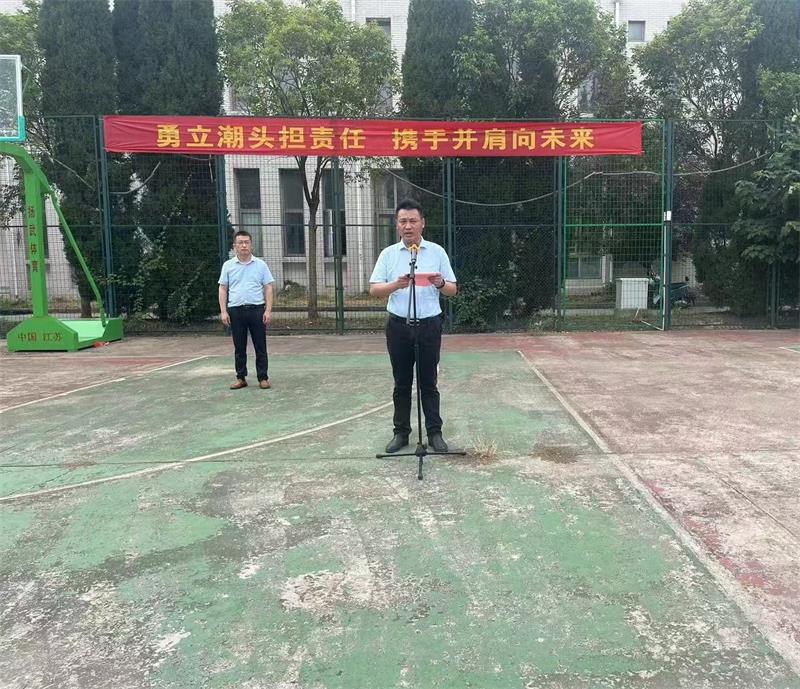 9月2日上午,学校在篮球场举行了新学期第一次主题升旗仪式暨秋学期开学典礼。苏辉副校长作了主题为《勇立潮头担责任,携手并肩向未来》国旗下讲话。学生管理服务中心主任施文龙主持仪式。