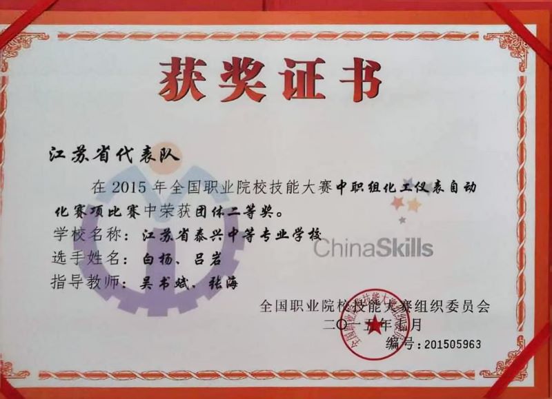 2012年,吕岩踏入江苏联合职业技术学院泰兴分院的大门不久,他便以对应用化工技术的敏锐洞察力脱颖而出。他深信“赛场是锤炼技艺、展现实力的最佳舞台”,从“三创学生”、“优秀团干”起步,连续三年征战职业院校技能大赛,屡创佳绩。2013年,他荣获泰州市赛一等奖,并首次征战国赛,摘得团体三等奖;2015年,他更是以国赛团体二等奖的佳绩实现了自我超越。这些荣誉不仅彰显了他对仪表自动化技术的精湛掌握,更锤炼出他“精准操作、快速应变”的职业素养,为他的职场生涯奠定了坚实的基础。