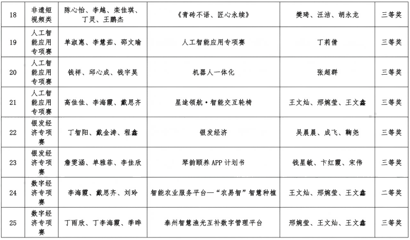 根据泰州市教育局《关于公布2025年泰州市大中专院校创新创业大赛获奖名单的通知》,我校在本次大赛中表现突出,斩获多项荣誉。现将获奖名单公布如下: