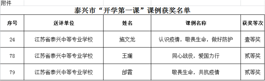 关于公布泰兴市“开学第一课”课例评选结果的通知