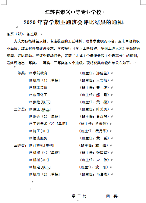 2020年春学期主题班会评比结果的通知