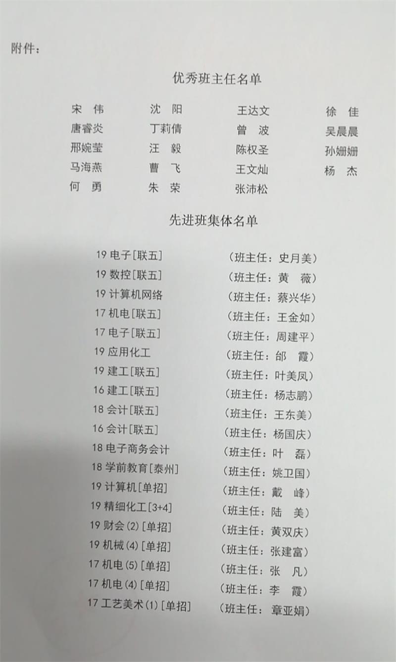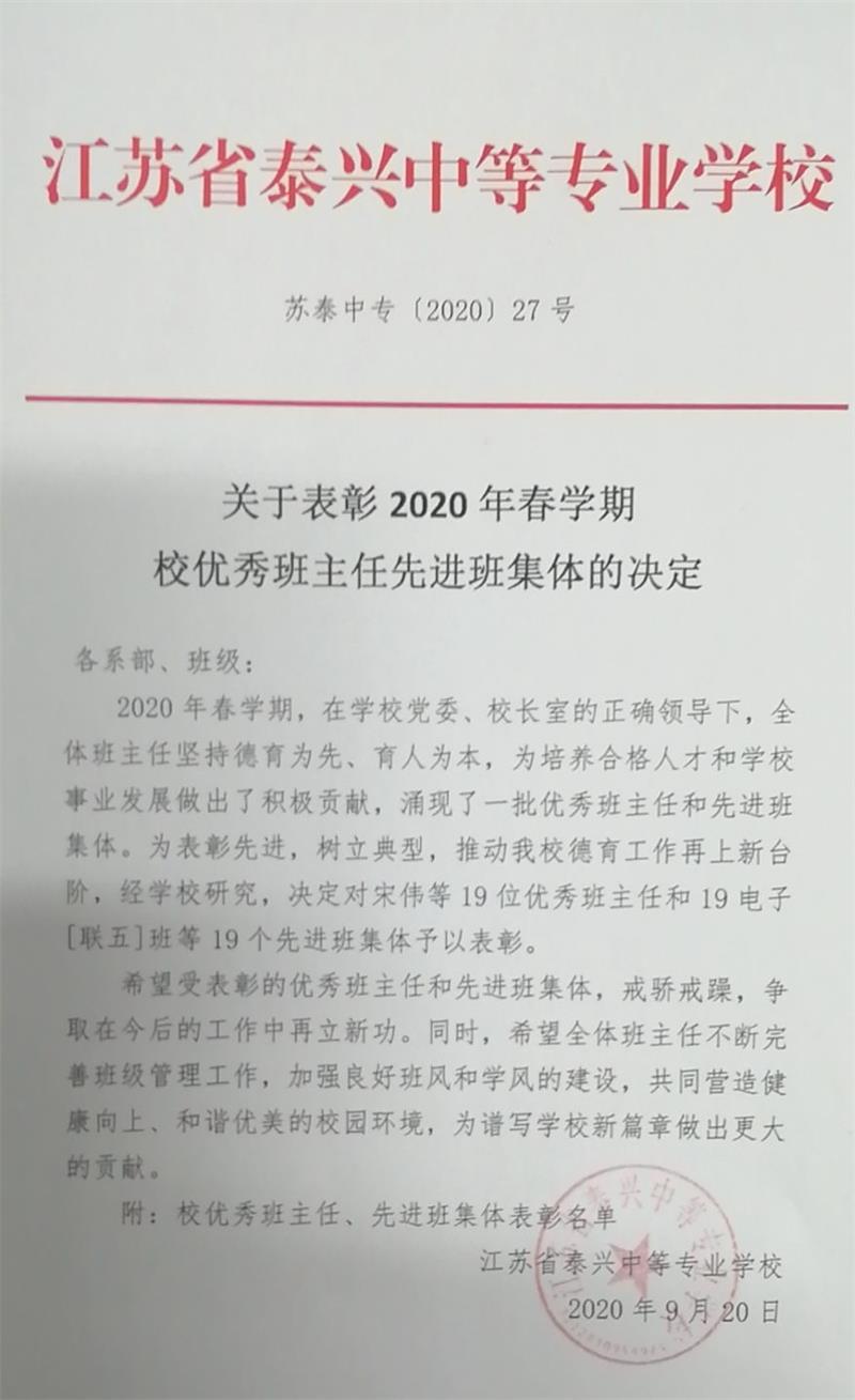 表彰2020年春学期校优秀班主任先进班集体的决定