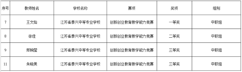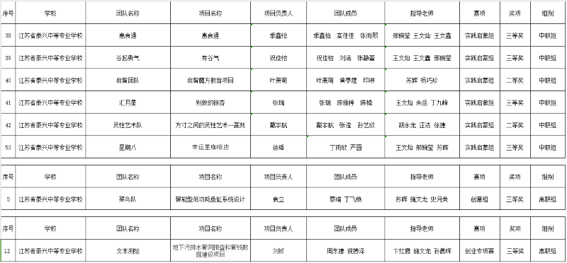 为进一步贯彻落实“创响泰州”创新创业行动,2023年学校大力推进创新创业教育,取得较为明显的成绩。在2023 年泰州大中专院校创新创业大赛中创新创业知识竞赛项目中鞠星宇(20建工联五)等231名学生荣获知识之星称号;在“创意专项赛、创业专项赛、实践启蒙赛、创新创业教育教学能力竞赛、直播电商专项赛”等项目中奖项汇总见下图。