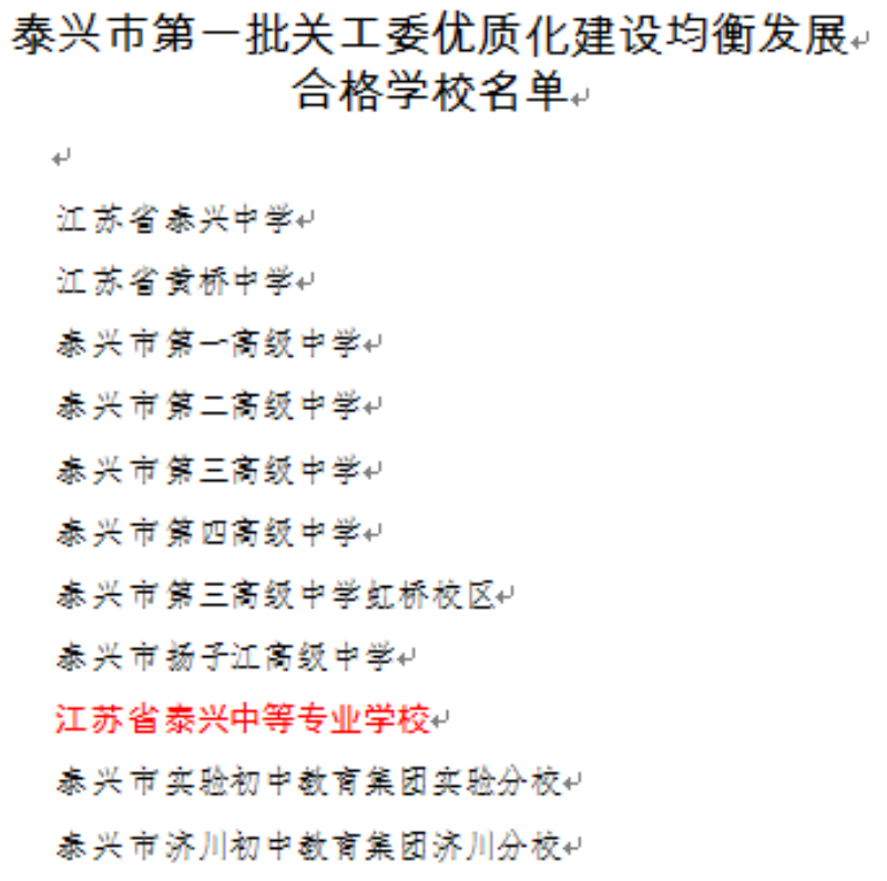 根据《市教育局关于公布泰兴市第一批关工委优质化建设均衡发展合格学校的通知》精神,我校关工委不断拓展工作思路、创新工作载体,扎实推进、积极创建,已达到泰州市中小学关工委优质化建设均衡发展基本要求。被评为泰兴市第一批关工委优质化建设均衡发展合格学校。