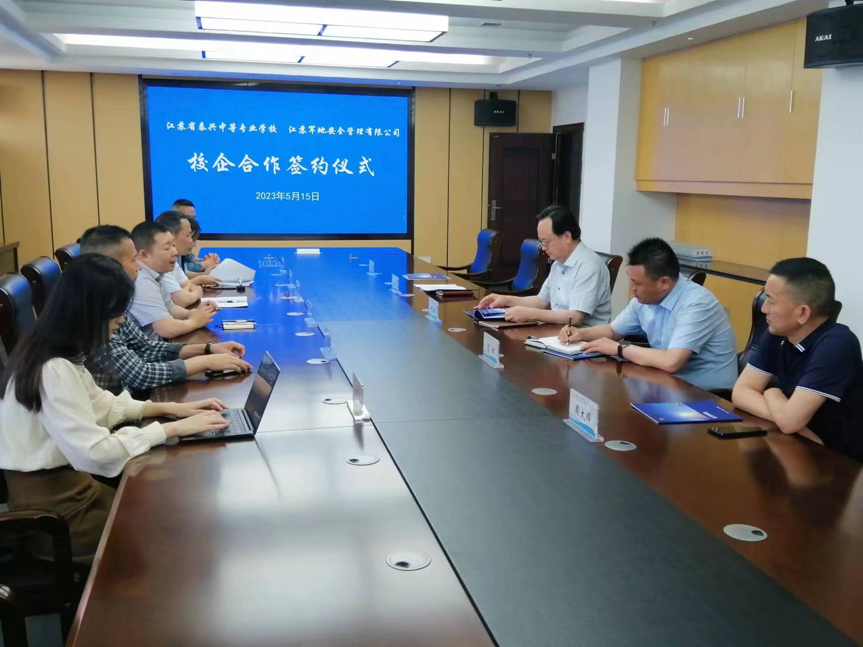 为贯彻职教活动周的活动精神,深化产教融合,充分利用资源,实现优势互补,我校与江苏军地安全管理有限公司,共同签订专业共建校企合作协议,联合在学校内开办应急管理相关专业。