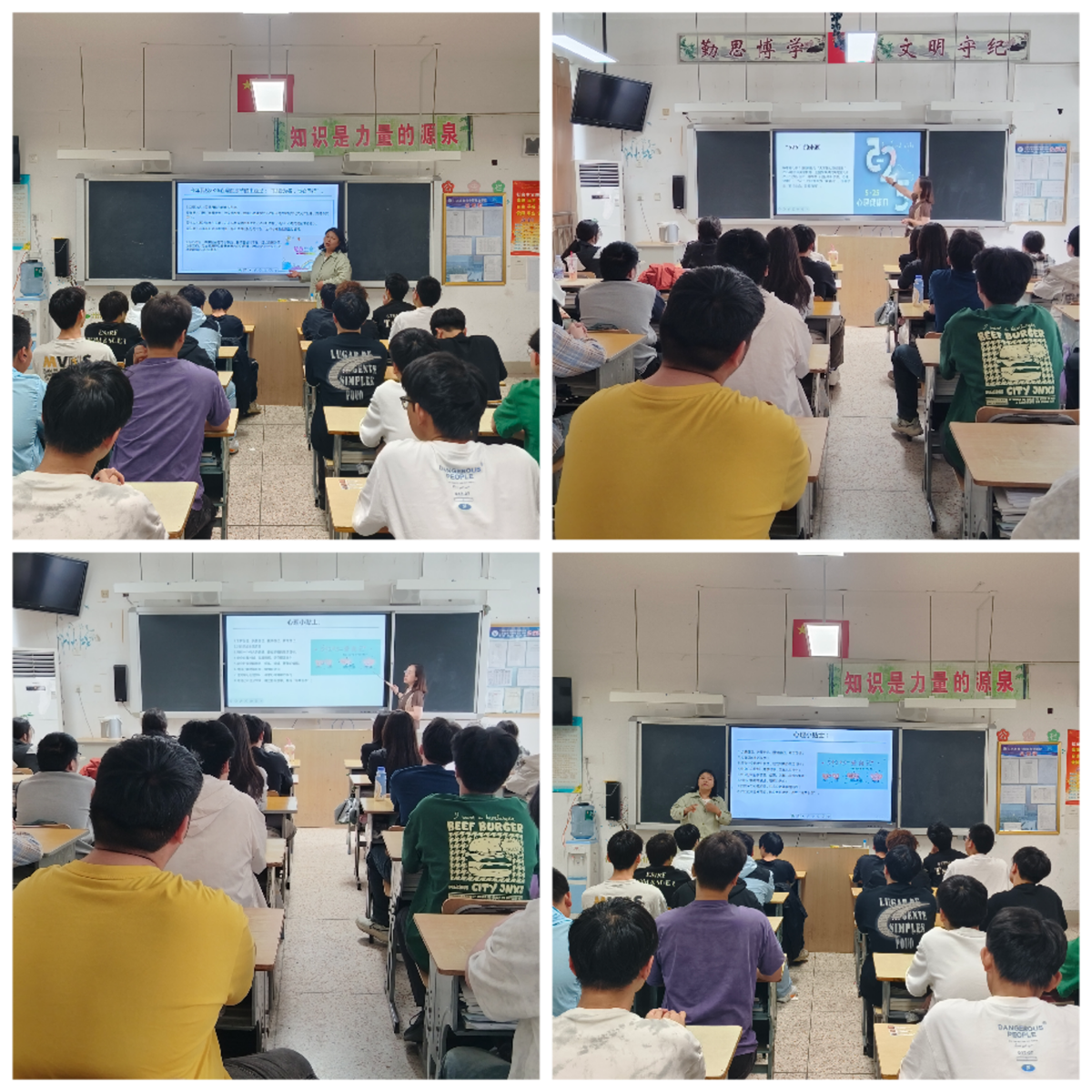 班会课回顾了本次心理健康月的活动,从525的由来到今年我校的主题,再到呼吁大家关注自身心理健康,最后给出自我接纳、自我关爱的小贴士、小方法。在此基础上,学生进一步讨论并总结了本次心理健康月各自的收获和成长。
