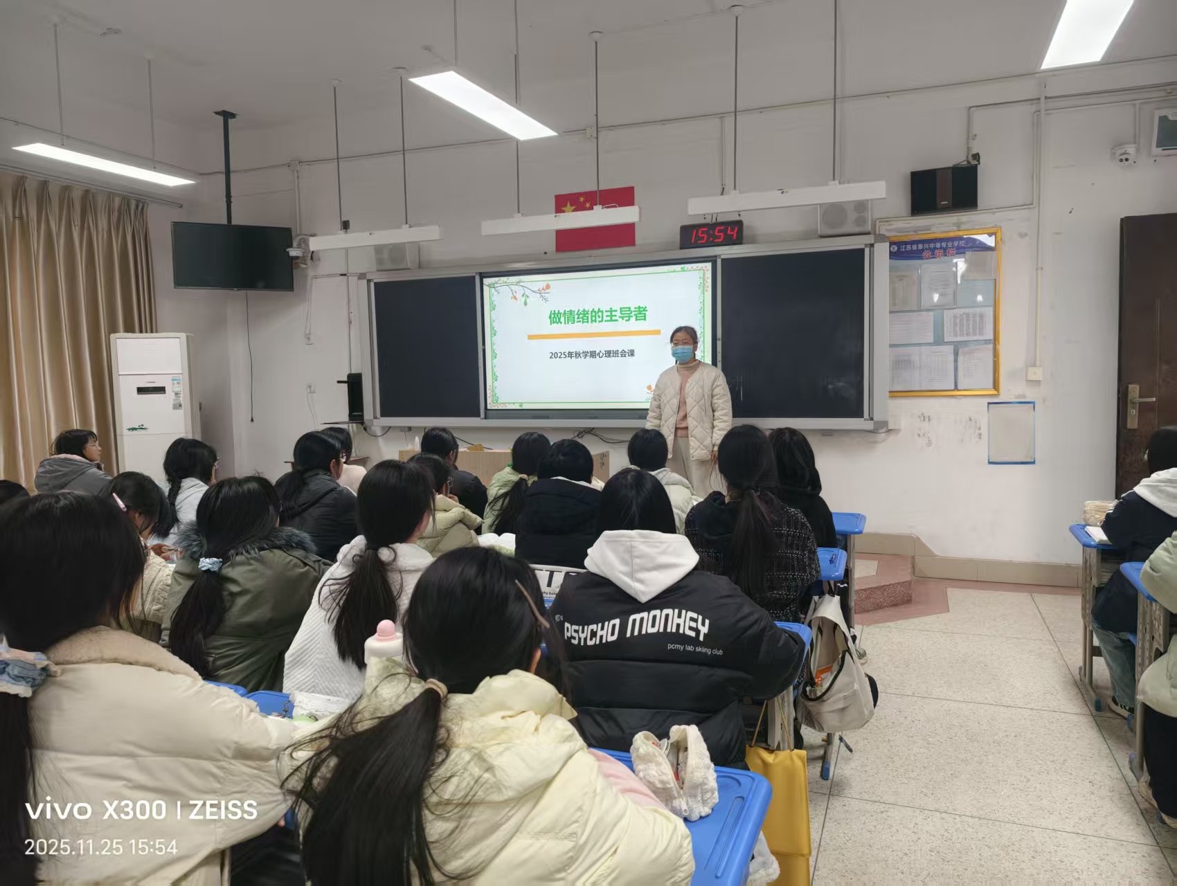 为引导学生认识情绪、管理情绪,提升心理健康水平,2025年11月25日,我校开展了以 “做情绪的主导者” 为主题的心理班会课。本次班会课聚焦青少年情绪特点与管理能力培养,通过丰富的案例、互动活动和知识科普,让学生在沉浸式体验中探索情绪奥秘,筑牢心理健康防线。