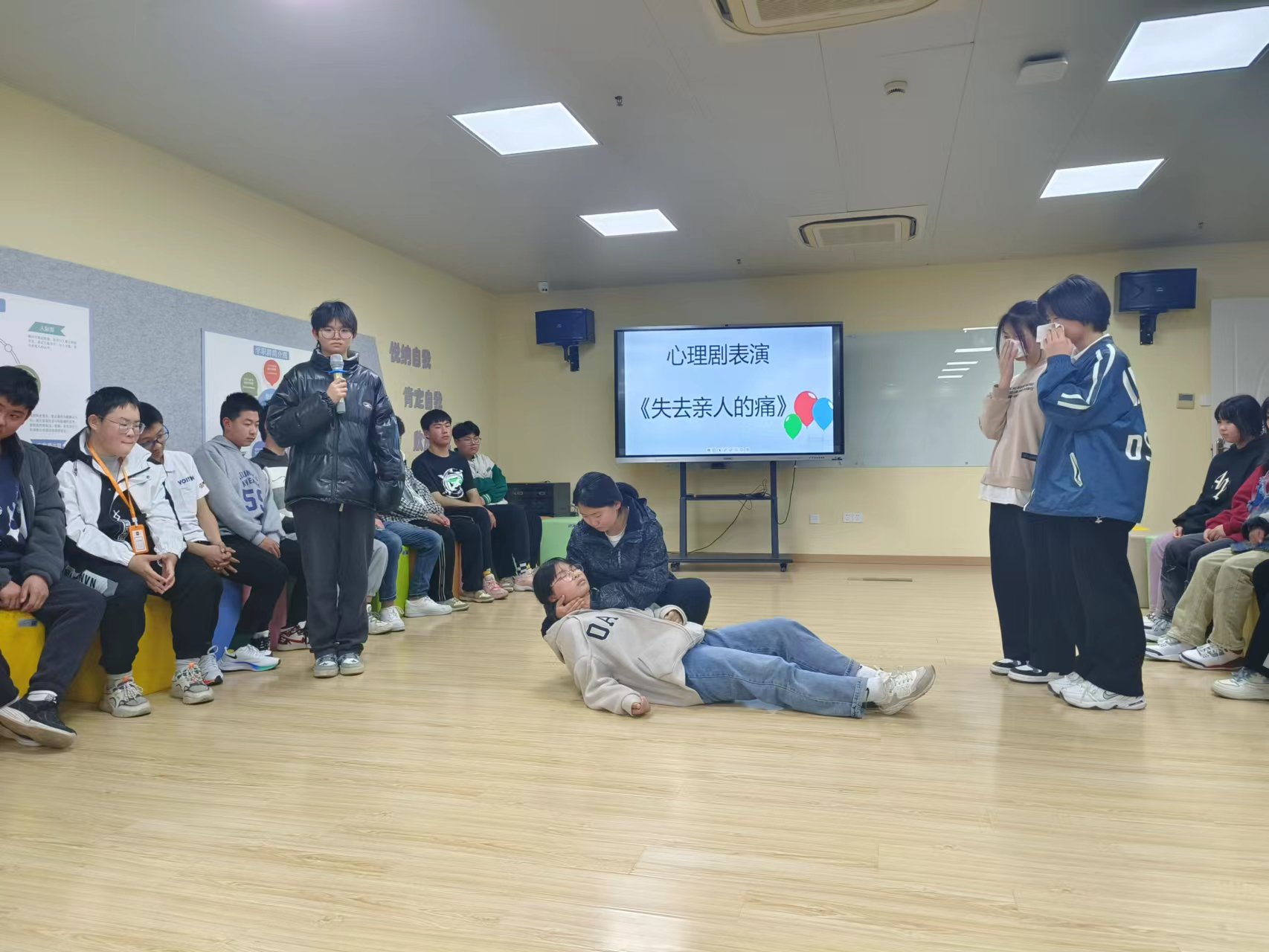 活动分为四个环节,第一环节小组辩论:怎样的人生才是好的人生?由庄子的《逍遥游》中“大鹏和小雀”的故事引入,由此让学生领悟到:小雀和大鹏各有特点,无需比较,发挥各自的擅长,就是最好的人生。第二个环节为认识生命的悲剧——自杀死亡,通过心理剧表演《失去亲人的痛》,让学生认识到生命不仅仅属于自己,也属于我们的亲人朋友和所有爱我们的人,当你选择了走向那一个世界,将是对你的亲人最大的伤害。第三个环节,通过愿望清单的列举,让同学们意识到只有活着才有可能实现那些愿望,我们还有大把大把的时间活着是那么珍贵。第四个环节,通过寓言故事让同学们看到那些自己已经拥有的东西,这才是能让我们幸福的东西,由此,启迪同学们:关于生命我们想对自己说些什么。