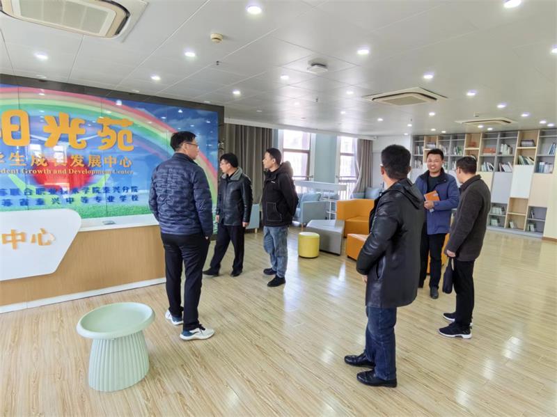 3月14日上午,东台市几所学校校长在我校副校长苏辉的陪同下,深入学校“阳光苑”学生成长发展中心,实地考察了中心硬件设施及心理服务工作的日常运作情况。