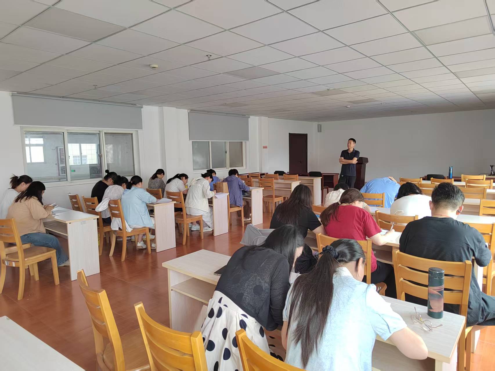 下午 2 时,为检验培训成效、巩固学习成果,李晓男老师组织开展了工序质量控制模块结业考试。考试内容紧密贴合课程重点与企业生产需求,全面考察学员对工序质量控制知识的理解程度与应用能力,进一步确保培训效果落地见效。