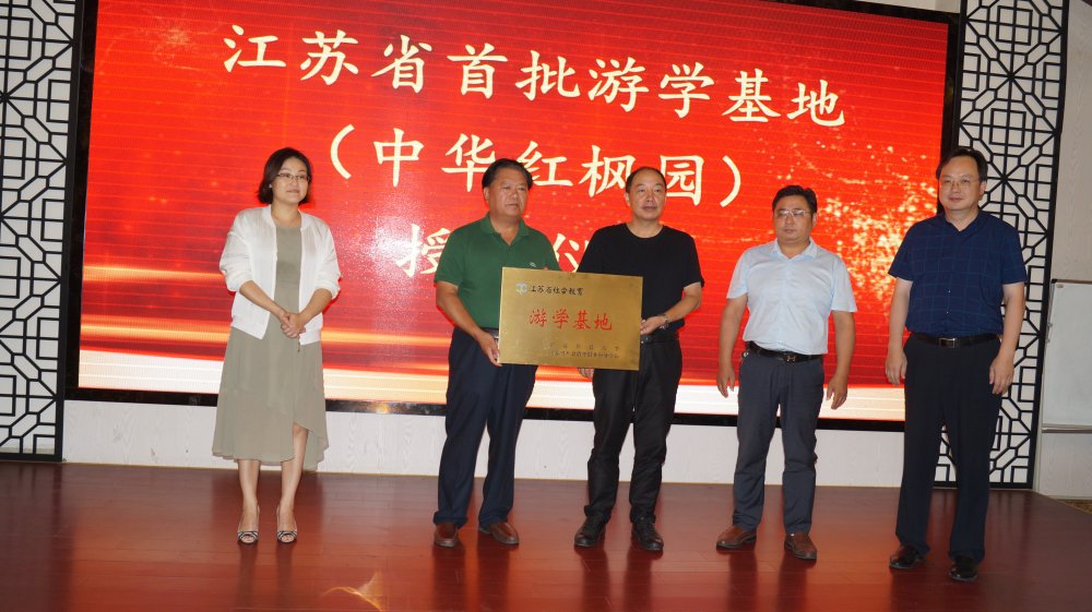中华红枫园董事长钱玉堂热情接待来宾并致欢迎辞,江苏开放大学吴校长宣读了游学基地批文,并举行了隆重的授牌仪式。