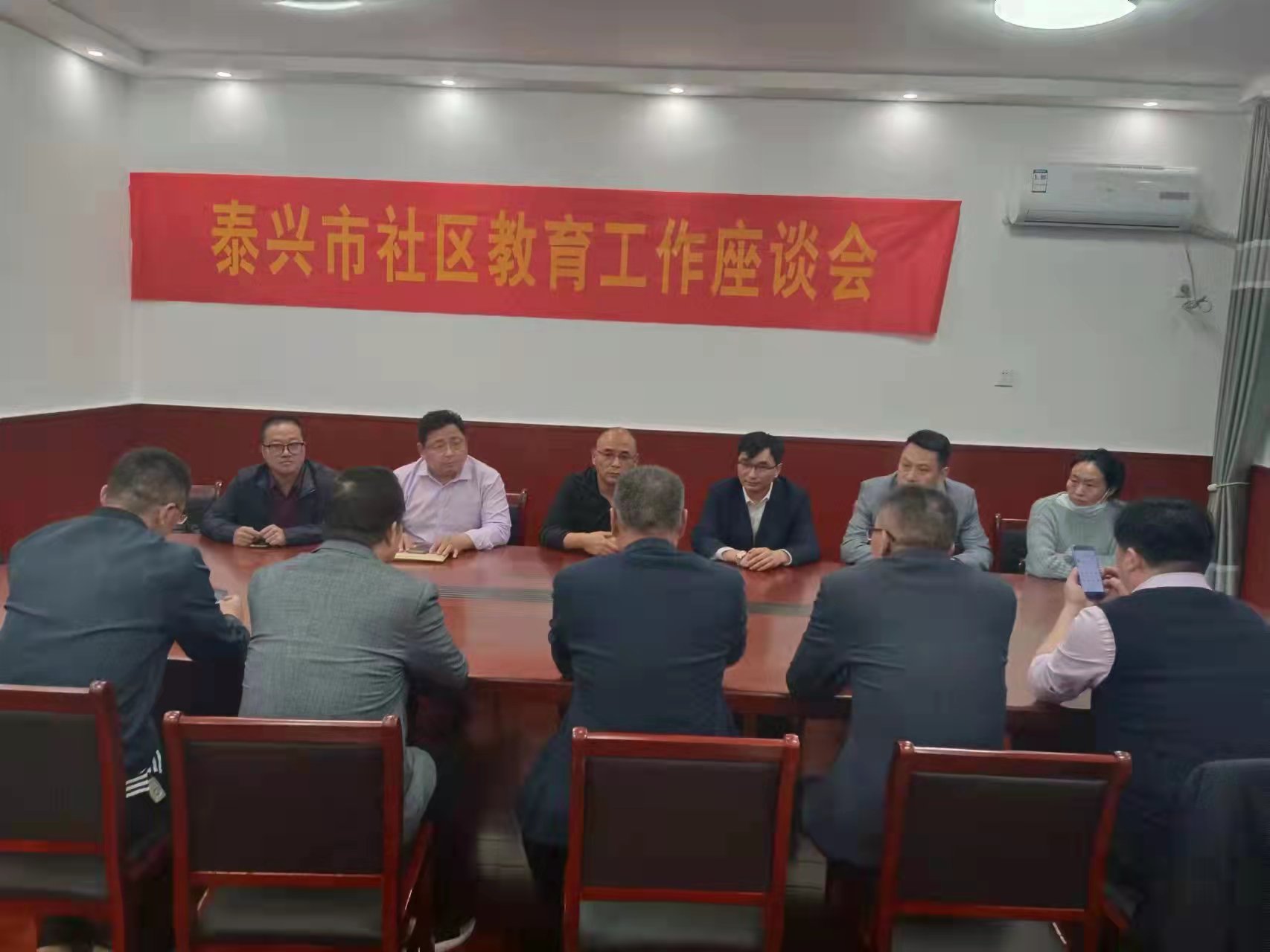 2022年4月27日下午泰兴市教育局成人教育和社会力量办学指导服务中心主任顾建祥、副主任周荣政在宣堡镇成人教育中心校开展泰兴市社区教育座谈会,我校副校长曹荣军、社会服务中心主任夏国文、副主任许樱参加座谈。