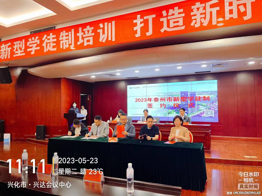 2023年5月23日星期二上午,泰州市人力资源和社会保障局在兴化兴达会议中心举办泰州市2023年度企业新型学徒制集中签约仪式,学校社会服务中心主任夏国文,教师殷俊参加,我校与中兵航联科技股份有限公司签订了新型学徒制培训合作意向书。