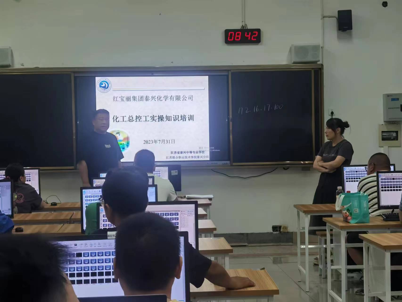 为进一步强化产业学院服务区域产业能力,根据我校与泰兴市经济开发区(滨江镇)企业员工培训协议,依托泰兴市化工新材料产业学院,2023年7月24日举行第二期红宝丽集团泰兴化学有限公司化工总控工(四级)培训班开班仪式,参训员工57人,7月24日—25日开展了2天的理论培训,7月31日—8月3日开展了4天的实操培训,8月7日—8日在我校进行理论、实操考试。经过大家的共同努力,培训取得圆满成功。
