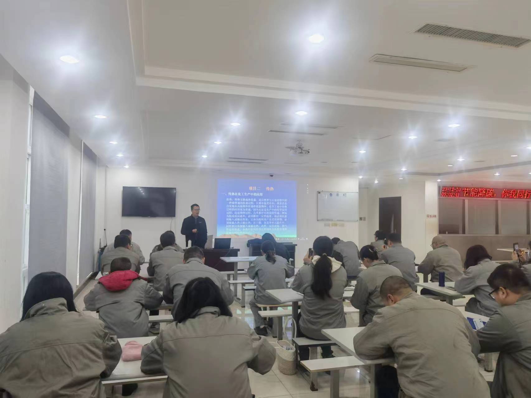 12月10日(周日),化学工程系主任马太平及社会服务中心副主任许樱,八点半准时到达经济开发区鸣翔化工股份有限公司,公司负责人严俊召集了所有接受培训学员,许樱组织所有学员签到并拍照,随后,马太平主任开始授课。