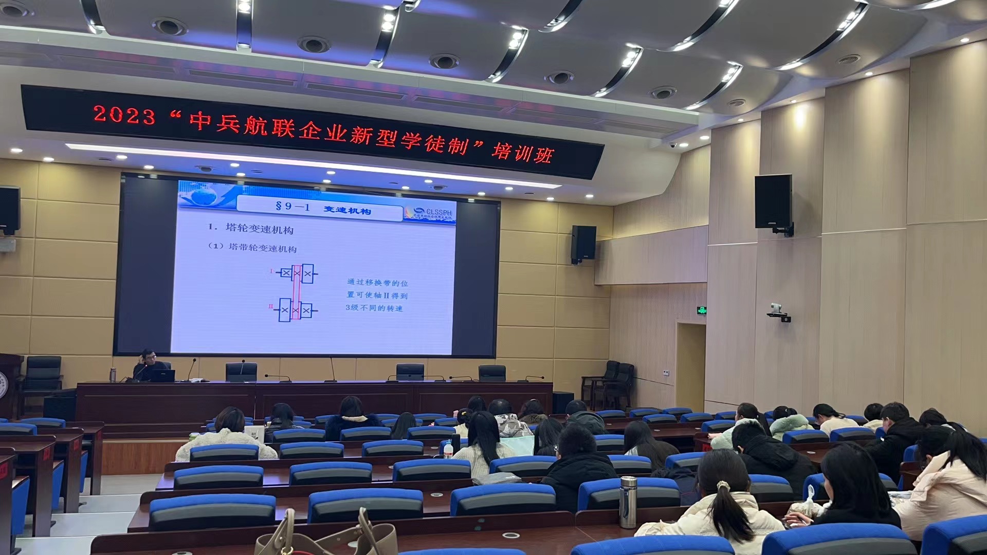 下午2:00,黄兵老师进行了授课。继续讲授了机械基础——变速机构。