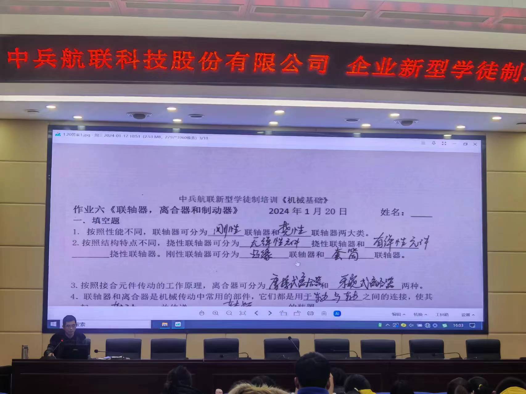 2024年1月20日,我校与中兵航联科技股份有限公司的新型学徒制培训项目继续在学校知行厅展开,共同推进新型学徒制培训。