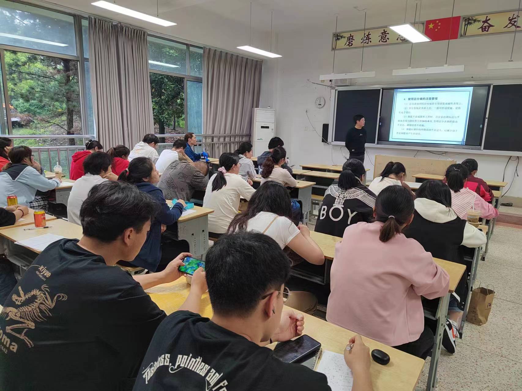 下午2:00,马留婉老师继续在学校1-105教室进行了授课,主要带领大家学习钳工工艺学,主要带领大家学习了钳工常用的测量器具的识读、使用、维护和保养。