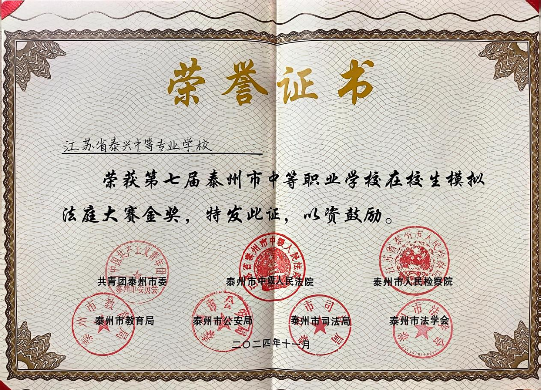 11月12日,泰州市第七届中等职业学校在校生模拟法庭大赛(决赛)在泰州市中级人民法院举行。我校代表队踏实备赛、沉着应对,在决赛中发挥出色,勇夺第一,将代表泰州参加省赛。黄亭煜和钱梦婷两位同学分别被评为“优秀模拟法官”和“优秀模拟公诉人”。11月12日,泰州市第七届中等职业学校在校生模拟法庭大赛(决赛)在泰州市中级人民法院举行。我校代表队踏实备赛、沉着应对,在决赛中发挥出色,勇夺第一,将代表泰州参加省赛。黄亭煜和钱梦婷两位同学分别被评为“优秀模拟法官”和“优秀模拟公诉人”。