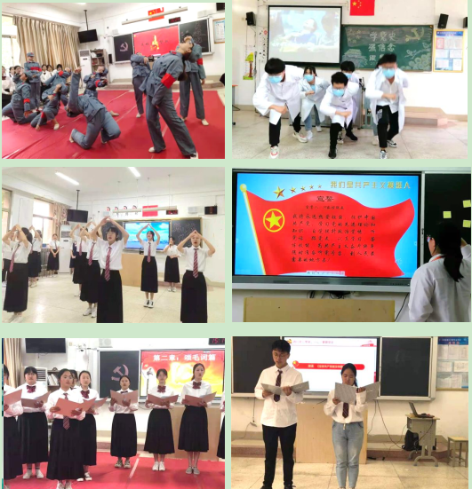 1. 主题班会百花齐放,诵读比赛精彩纷呈。为了诠释“学党史,强信念,跟党走”的主题,各班主题班会分别用朗诵、舞蹈、知识抢答、演讲、合唱等表现形式,在活动过程中,同学们不仅学习了党的发展史,更是感受到了学习革命先烈精神,传承红色基因的必要性和迫切性。