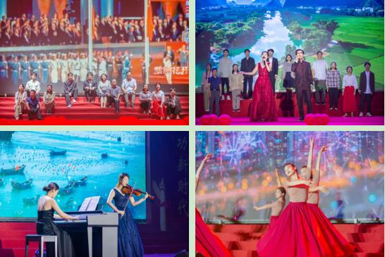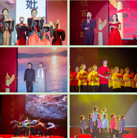 演出在《诗经•周颂•丰年》表演中正式拉开序幕。演出分开创、建设、复兴3个篇章。整场演出精彩纷呈,舞蹈《活着,1937》《灯火里的中国》、情景剧《振兴中华》、诗朗诵《不朽的红船》《伟大的觉醒》、歌曲《当我别上这枚党徽》《我的中国心》《走进新时代》《党旗飘扬的方向》等节目内涵深刻、精彩纷呈,讴歌了党的领导,礼赞了党的百年辉煌,彰显了中国共产党全心全意为人民服务的根本宗旨,凝聚着党和人民的血肉之情;展示了我校全体师生斗志昂扬、敢作善为的时代风貌。精彩的演出,一次次赢得了师生们的阵阵掌声和喝彩。