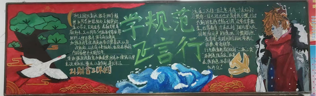 “行为规范养成教育”活动中我校开展了“学规范,正言行,争做文明学生”主题黑板报绘制活动。此次黑板报评比活动,引导学生培养良好、文明的行为习惯,形成良好的校纪校风,营造和谐人文校园。经系部推荐,共评出一等奖5名,二等奖13名,三等奖20名,现将获奖结果公布如下: