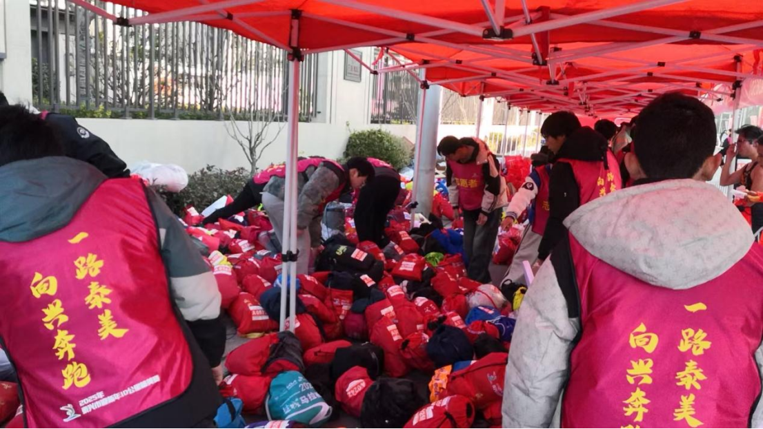 比赛当天,寒风刺骨,所有志愿者凌晨4点钟集合完毕,穿好志愿者马甲,精神抖擞地前往各自的岗位。根据岗位分工,他们分别担任存取包、指引、分流、医疗、补给、计时和物资发放等不同职责。比赛中所有志愿者各司其职,紧密配合,以高度的热情为参赛运动员提供了细致的服务,为本次大赛的圆满举办贡献了自己的一份青春力量,展现了我校学子勇于担当社会使命的优秀品质。