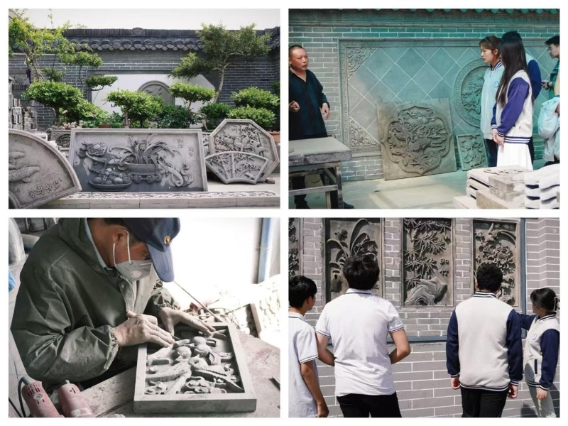 在展厅参观结束后,同学们走进了砖雕非遗工作室。非遗传承人刘师傅热情地迎接大家,并详细讲解了砖雕的历史渊源、制作工艺以及在古建筑修复中的应用。