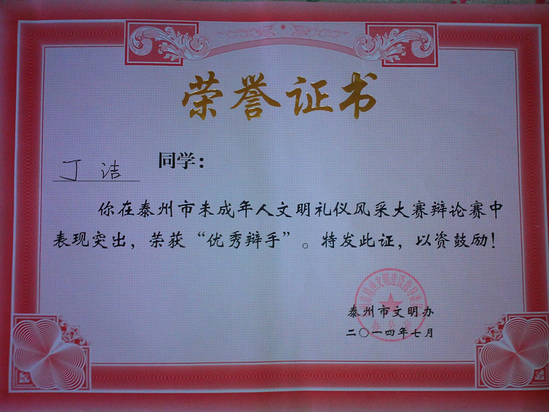 我校代表队荣获泰州市未成年人文明礼仪风采大赛二等奖