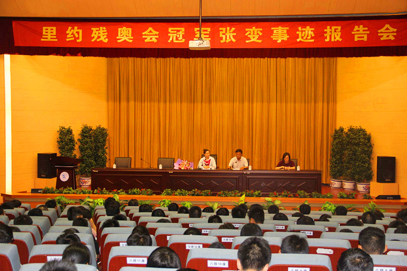 ![]() ![]() ![]() ![]() ![]() ![]() 张变,2岁时,因为小儿麻痹症导致下肢瘫痪。2003年,17岁的她与乒乓球结缘。通过十年的努力奋斗,她获得了北京、伦敦、里约三届残奥会和世锦赛、亚锦赛、亚残会金牌,实现了乒乓球生涯的大满贯,被授予全国五一劳动奖章、全国五四青年奖章、全国三八红旗手、江苏省劳动模范、江苏省三八红旗手、江苏省长征突击手等荣誉。在今年里约残奥会上,张变取得女子轮椅乒乓球TT5级单打冠军和团体冠军的好成绩,为中国残奥会军团再添两枚金牌。 张变用亲身经历诠释了坚忍不拔,永不放弃的拼搏精神,她说,获得冠军并不是最重要的,不放弃,追求梦想才是最骄傲的成就!面对荣誉,张变表示会继续努力,争取再创佳绩,为祖国争光,为家乡人民争光。 我校副校长徐志浩在会上致欢迎词,他表示张变是我们国家的骄傲,更是我们泰兴人的骄傲,她来我校举办事迹报告会是一个非常珍贵的机会。号召同学们要学习张变精神,无论经历了怎样的挫折,都要坚定梦想,努力拼搏,热爱生活,感恩他人,回报社会与国家。 当天恰好是张变30岁生日,学校特意为他准备了生日礼物,让张变倍受感动。张变先进事迹报告会受到与会师生一致好评,大家会后与她真诚交流,请家乡冠军签名、合影留念。 |