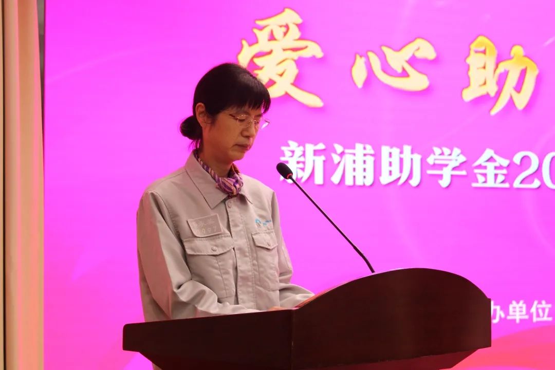 新浦化学(泰兴)有限公司副董事长潘永美介绍了新浦公司的助学历史。新浦公司的长远快速发展离不开市委、市政府的大力支持下,在为泰兴经济发展做出贡献的同时,不忘回报社会、捐资助学。潘总同时鼓励受助学生认真学习,不畏艰难,树立长远奋斗目标并为之拼尽全力。