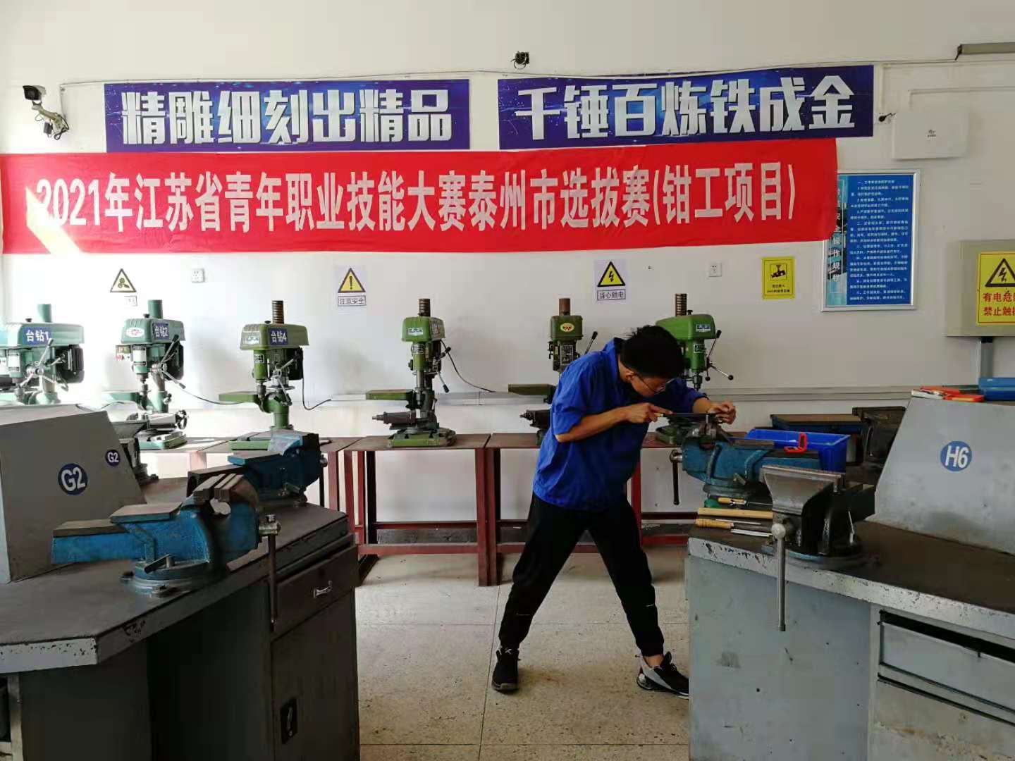为推荐优秀青年技能人才参加“振兴杯”青年职业技能大赛江苏省选拔赛,9月30日,由共青团泰州市委员会主办,共青团泰兴市委员会、江苏省泰兴中等专业学校承办的2021年江苏省青年职业技能大赛泰州市选拔赛(钳工项目)在我校顺利开展。