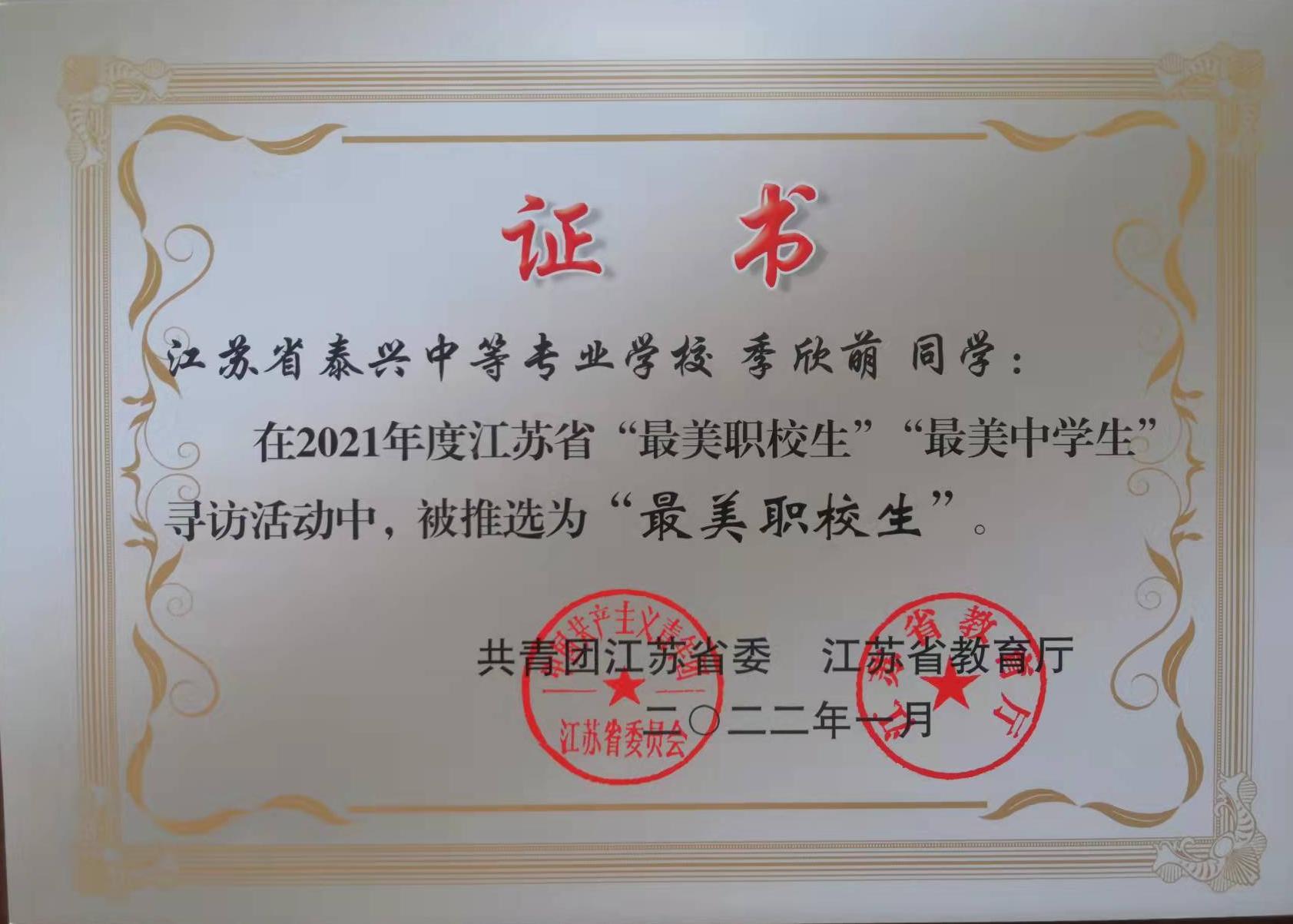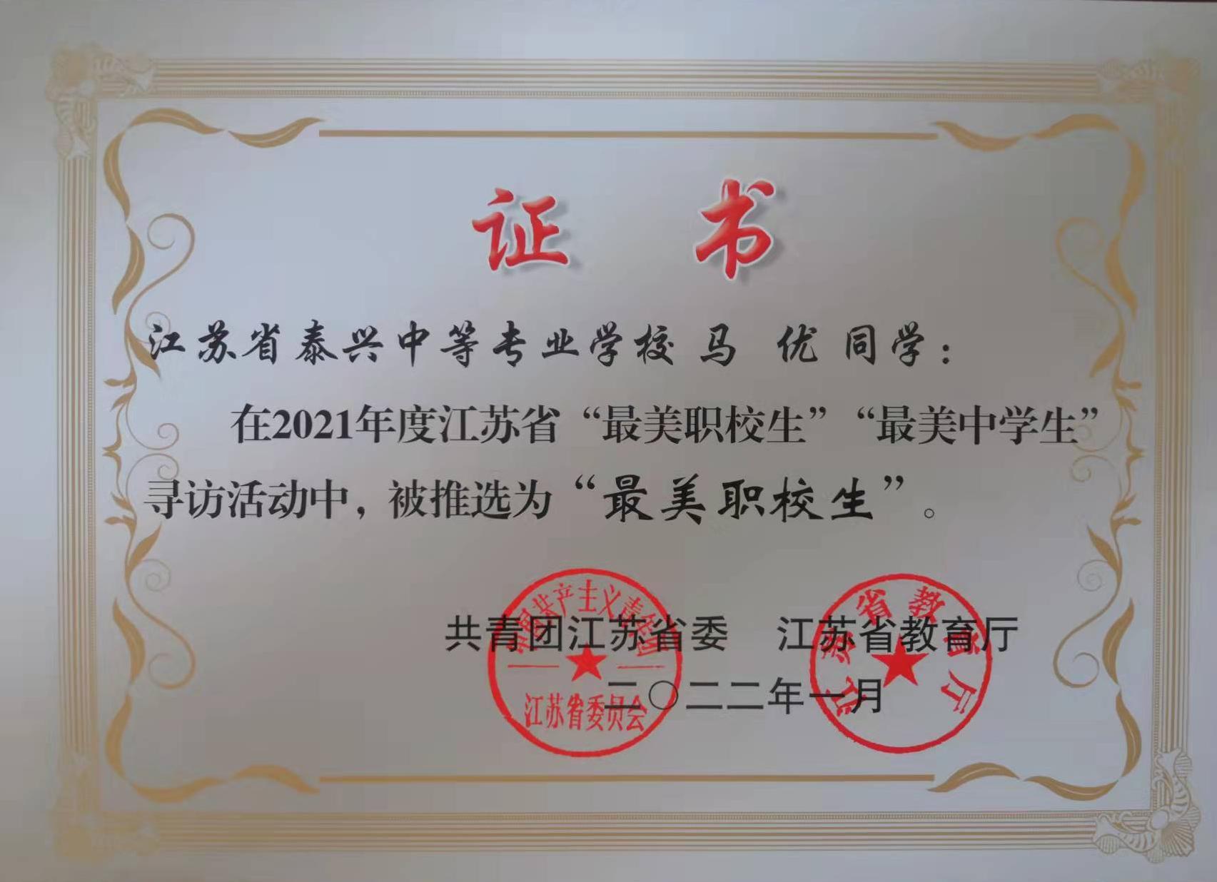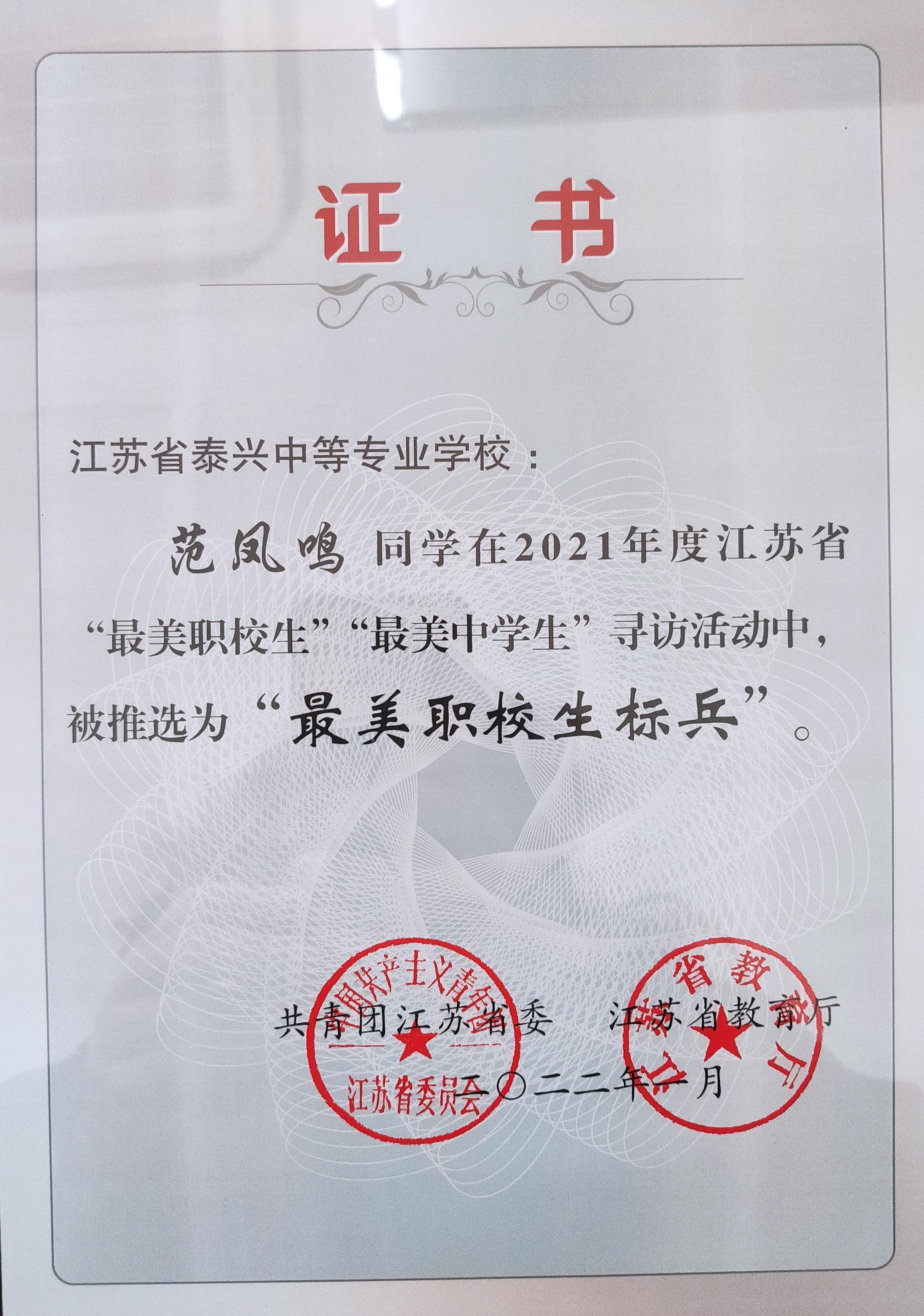近期,在共青团江苏省委、江苏省教育厅联合组织的“最美职校生”“最美中学生”寻访活动中,我校18财会[联五]班范凤鸣荣获“最美职校生标兵”;18财会[单招]班季欣萌、19施工[3+3]班马优荣获“最美职校生”。