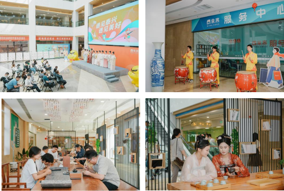 在我市人才科技广场象寓一楼,汉服社团的同学们身着精美汉服,展示了汉服文化,将古典的韵味与现代社区相融合。与此同时,茶艺社团的同学们也在现场摆起了茶桌,为居民们献上了一场茶艺表演。他们熟练地展示着泡茶、品茶的技艺,让居民们领略到了中国茶文化的博大精深。茶香四溢,吸引了众多居民驻足品茗,交流茶文化心得。