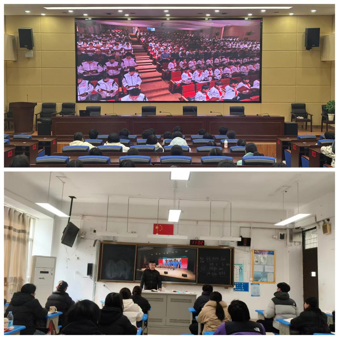 学校积极组织全校师生观看了国家宪法日“宪法晨读”活动直播。清晨的校园里,师生们精神饱满、坐姿端正,节奏齐声诵读宪法条文。