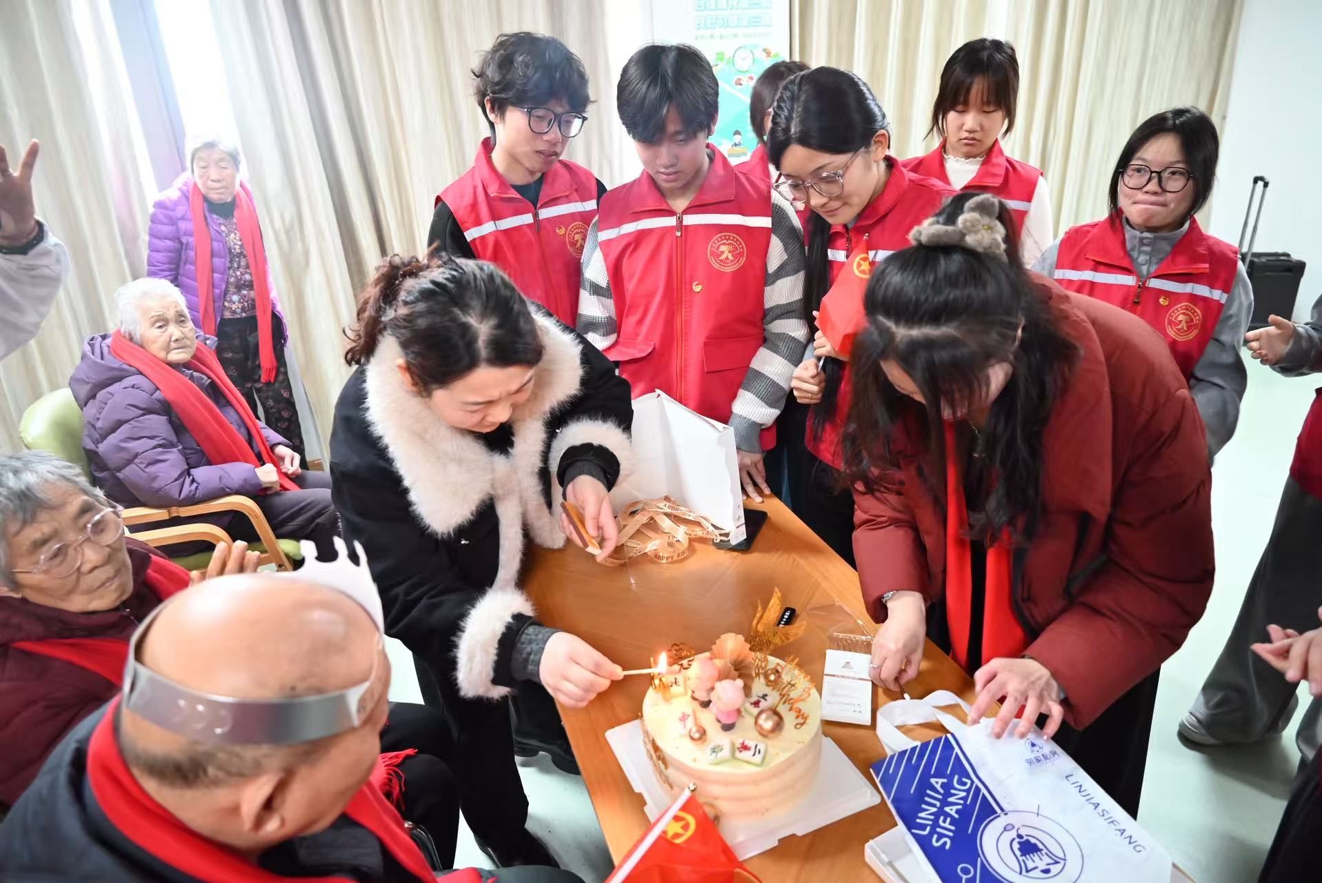 活动中,志愿者们为80岁退伍老兵爷爷举办了特别生日会,定制蛋糕、生日歌声传递着诚挚祝福,爷爷感动不已,分享了保家卫国的峥嵘岁月。