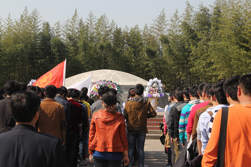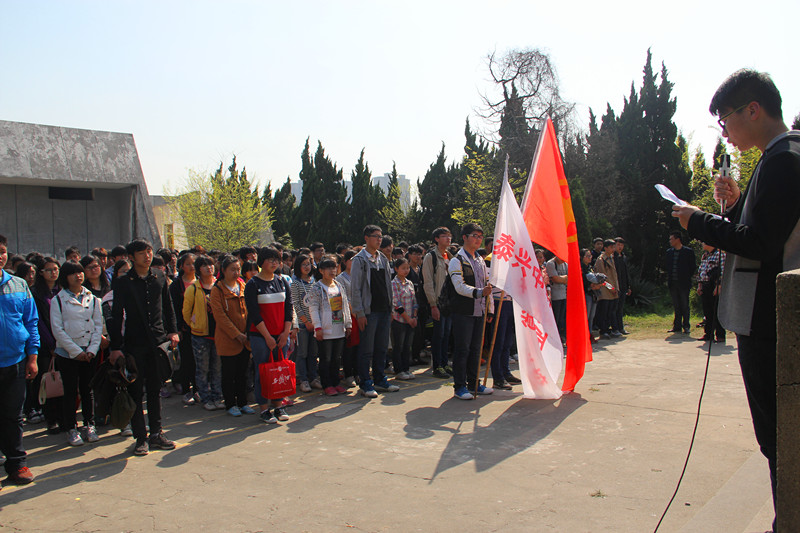 ![]() ![]() ![]() 4月4日下午,我校团委组织13级10个新生班级的师生前往泰兴公园中安轮烈士纪念馆,参加缅怀革命烈士、祭扫烈士墓活动。