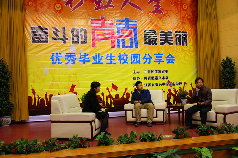 ![]() ![]() 12月10日,由共青团江苏省委主办,共青团泰兴市团委协办,我校承办的“彩虹人生——奋斗的青春最美丽”优秀毕业生校园分享月活动,在我校主报告厅开启此次活动的泰兴之旅。 |