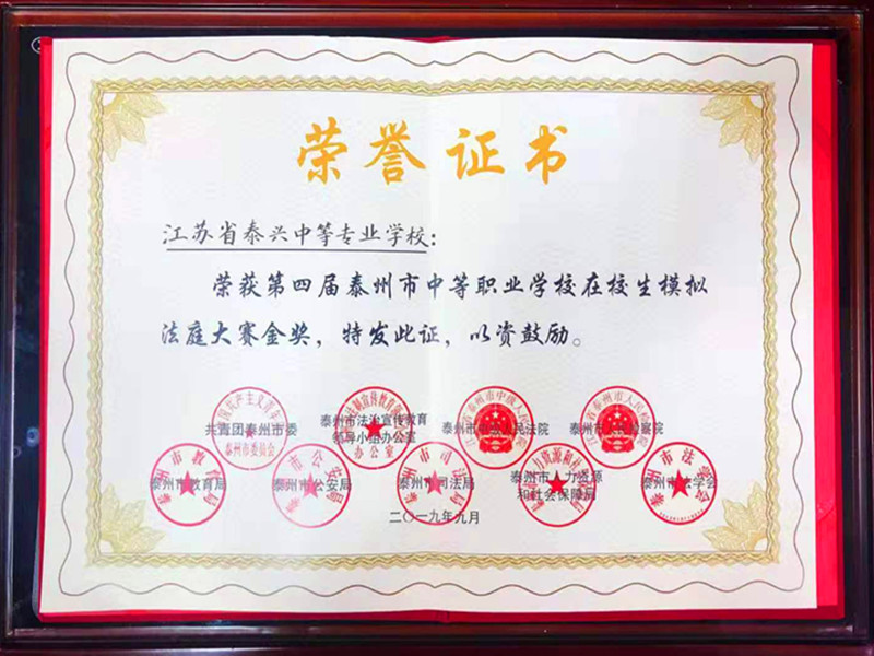 我校代表队荣获第四届泰州模拟法庭大赛金奖