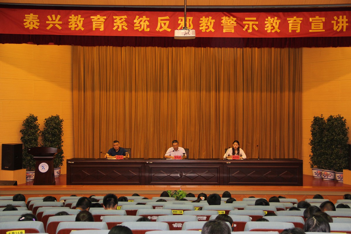 为进一步增强我校师生对邪教罪恶本质的认识,营造反邪教宣传氛围,我校于9月28日在学校报告厅举办了“崇尚科学正清风 旗帜鲜明反邪教”警示教育宣传的讲座,由泰兴市委教育工委副书记季文才主讲。