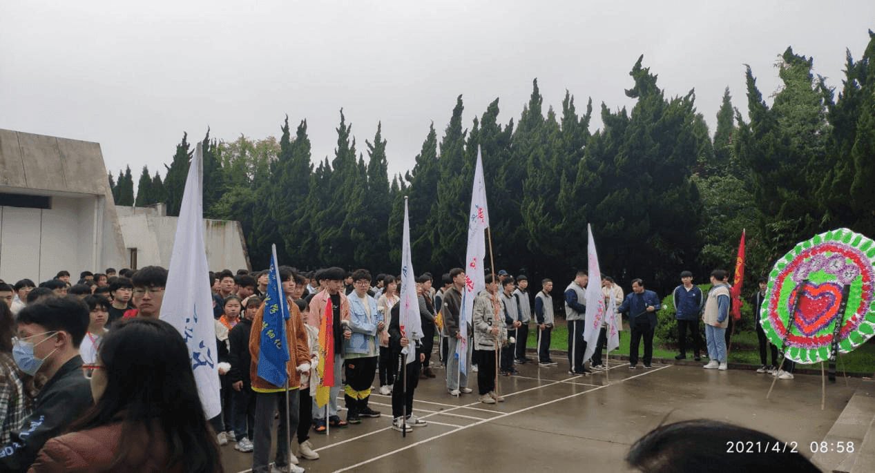 首先,主持人宣布清明祭扫活动正式开始,学生向烈士敬献花圈,全体师生向烈士致默哀礼。