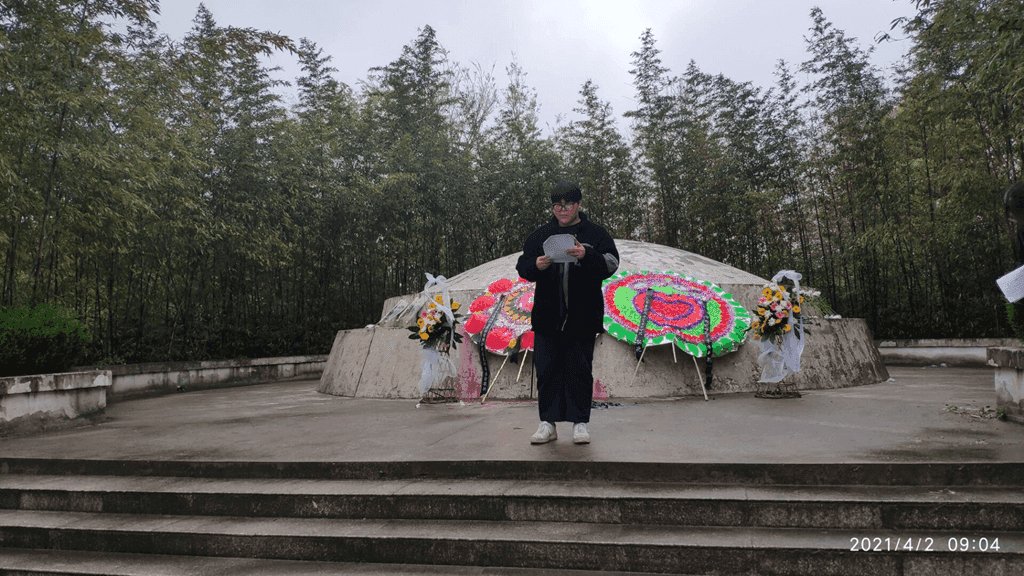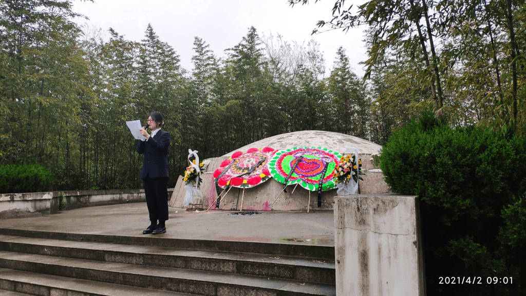 随后,由学生代表领誓,在陵墓前重温入团誓词,继承革命先烈的遗志,为祖国的建设和发展奉献青春和热血。