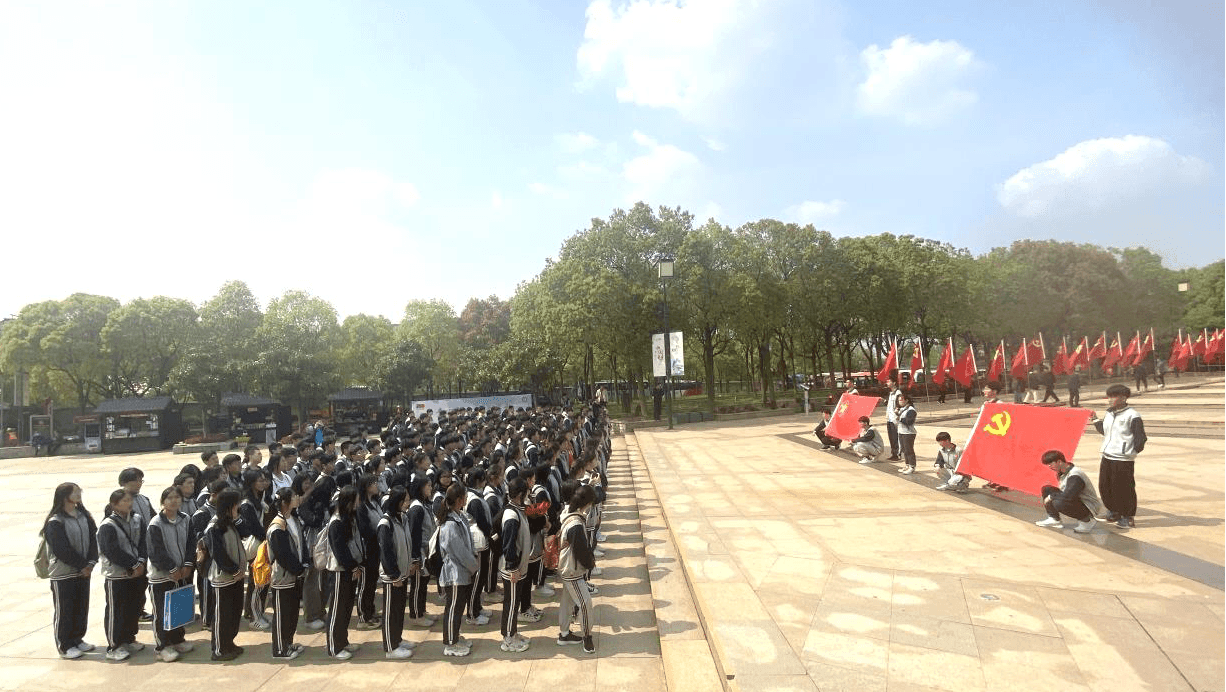 站在“苏南抗战胜利纪念碑”前,同学们思潮澎湃,热血沸腾。他们向先烈们敬献花篮,致默哀表达深切的哀思,随后学生代表发表了一场充满革命豪情和壮志的发言。在这样氛围下,所有学生都举起右手庄严宣誓:将接过前辈勇敢奋斗的旗帜,努力学习文化知识,刻苦练就过硬本领,力做青年榜样。学习工匠精神,厚植家国情怀,为建设美好家乡和富强祖国而奋斗不止,砥砺前行!