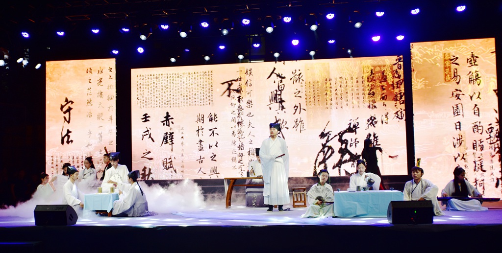 “赤子之心 爱国如家”篇章中,音诗画《兰亭序》和中国古典舞《江南》体现了五千年文化,三千年诗韵,诗意中国,源远流长。