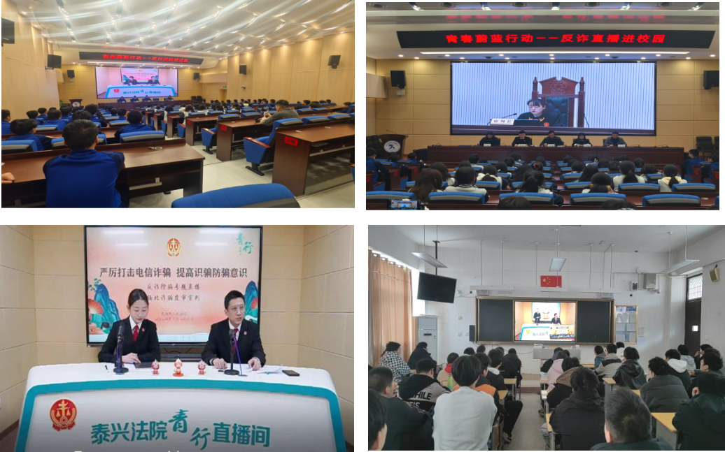 2024年3月26日,我校携手泰兴市人民法院和共青团泰兴市委员会共同开展了一场别开生面的“青春蔚蓝行动——反诈直播进校园”活动。此次活动旨在进一步提升学生们的反诈意识,筑牢校园安全防线。