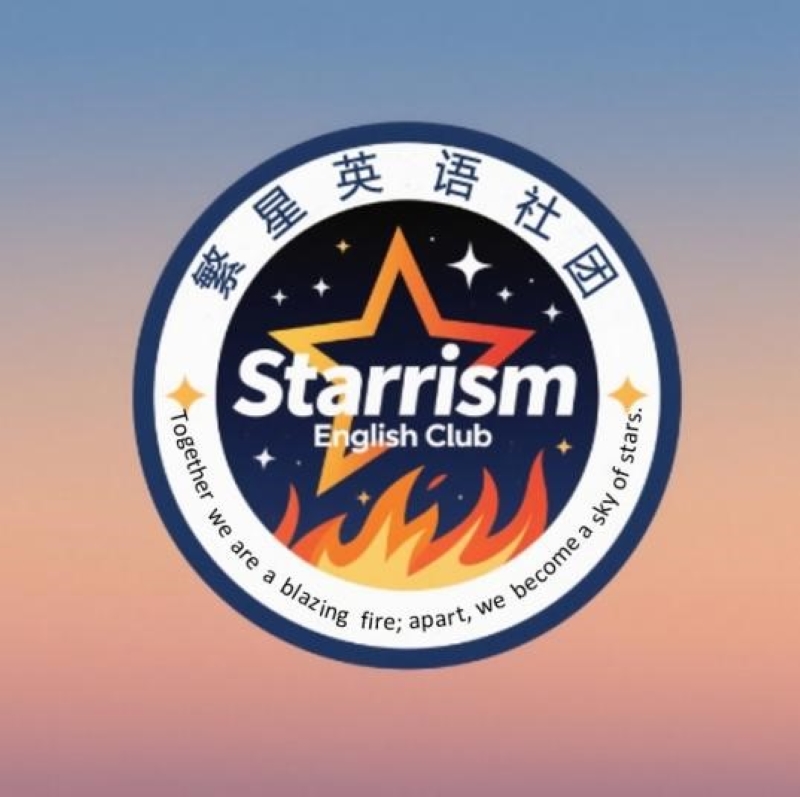 Starrism English Club (繁星英语社团),以“繁星”为名,寓意每位成员都是独特闪耀的星辰。聚如炽热火焰,迸发无限能量;散时各自璀璨,点亮英语学习的浩瀚星空。